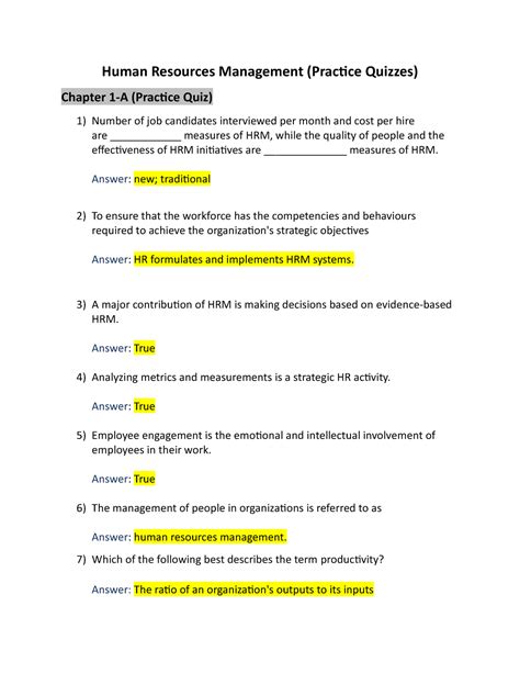 Read human resource management quiz questions with answers Doc Google eBookstore